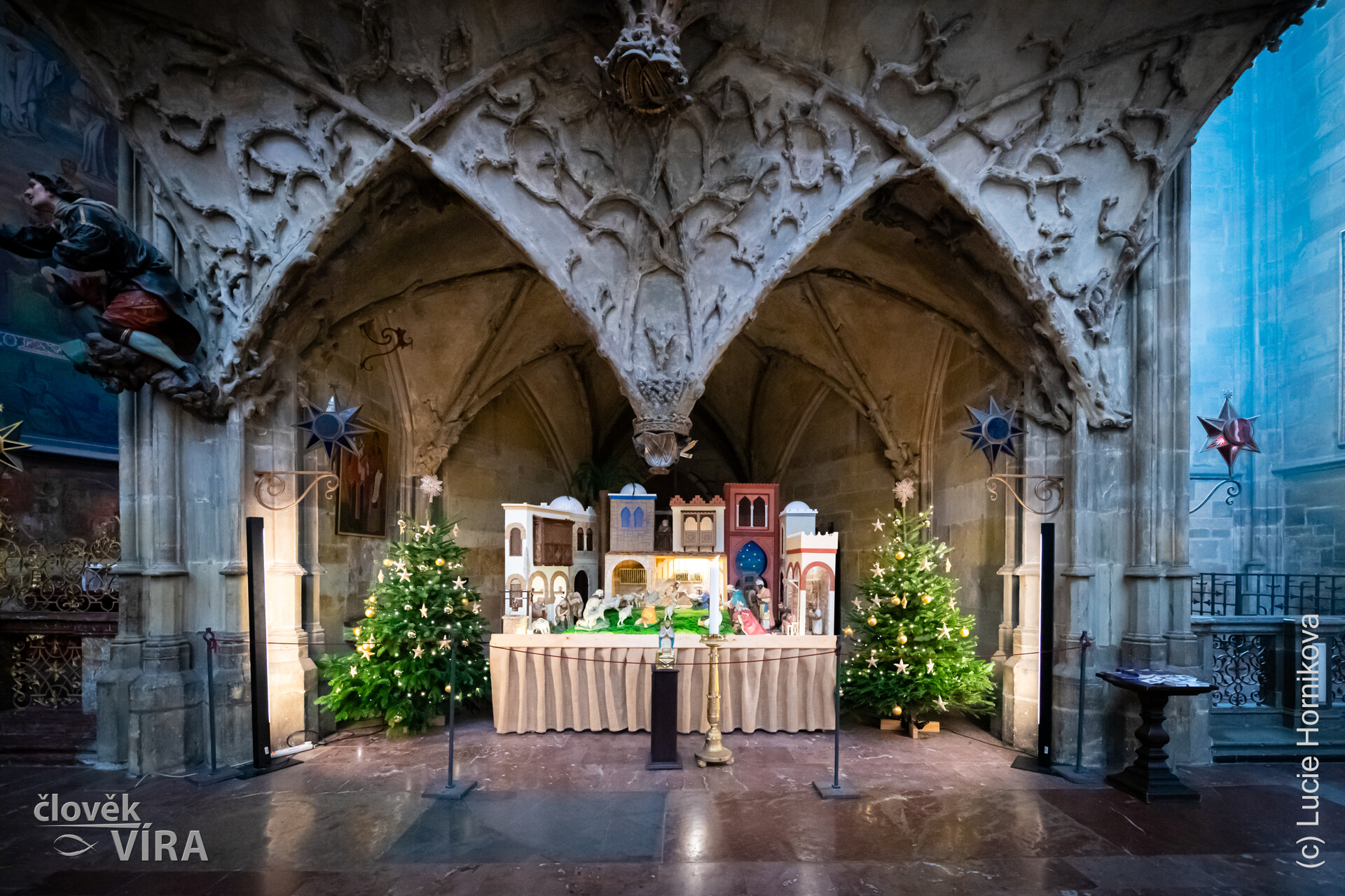 Svatovítský betlém, který se v uplynulých letech přestěhoval z jedné z bočních kaplí pod královskou oratoř u presbytáře katedrály i tento rok ozdobí Vánoce na Pražském hradě. Katedrální betlém, tvořený 25 polychromovanými figurami ze sádry a z keramiky, vytvořený sochařem Václavem Andresem (1894–1969), prošel v předloňském roce generální opravou a všechny figury byly péčí kapituly zrestaurovány. Práce na obnově betlému pokračovaly i v minulém roce, kdy restaurátorky Dagmar Lebenhartová a Irena Třísková připravily jeho novou instalaci. Dosud byl betlém instalován střídavě v jeskyni podle návrhu Karla Stádníka, nebo v jednoduché chýši. Již potřetí bude betlém k vidění pod pozdně gotickou Královskou oratoří v chórovém ochozu katedrály. Tento prostor sám o sobě svým ztvárněním připomíná jeskyni. Dnešní betlém v počtu 25 figur z polychromované keramiky a sádry, který měl být pouhým provizoriem, nakonec pro svou líbeznost zdomácněl. Velmi osobitě působí zejména netradiční ztvárnění klečící Panny Marie objímající děťátko v jeslích, které se dočkalo četných kopií. Pro katedrálu byl původně určen monumentální keramický betlém, který měla vytvořit prof. Helena Johnová (1884–1962). Jeho vznik iniciovala Jednota pro dostavění Chrámu sv. Víta na Pražském hradě. Betlém měl být trvale vystaven v kapli pod klenotnicí, práce na jeho realizaci však přerušila 2. světová válka a nástup totalitního režimu. Zamýšlený projekt glazovaného betlému s národopisnými prvky, které měly odrážet vztah slovanské duše k Bohu, se tak nepodařilo uskutečnit.